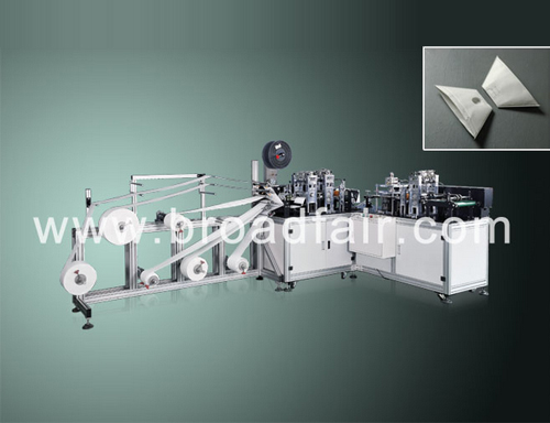 鴨咀口罩制造機(jī)用于生產(chǎn)適用于高污染工業(yè)用的鴨咀型口罩,口罩本體部分可使用6-10層的PP無紡布及過濾材料。從原材料入料到鼻線插入、成品的制成均為一條線自動化作業(yè)??谡挚砂惭b呼吸閥,過濾效果可達(dá)N95標(biāo)準(zhǔn)。